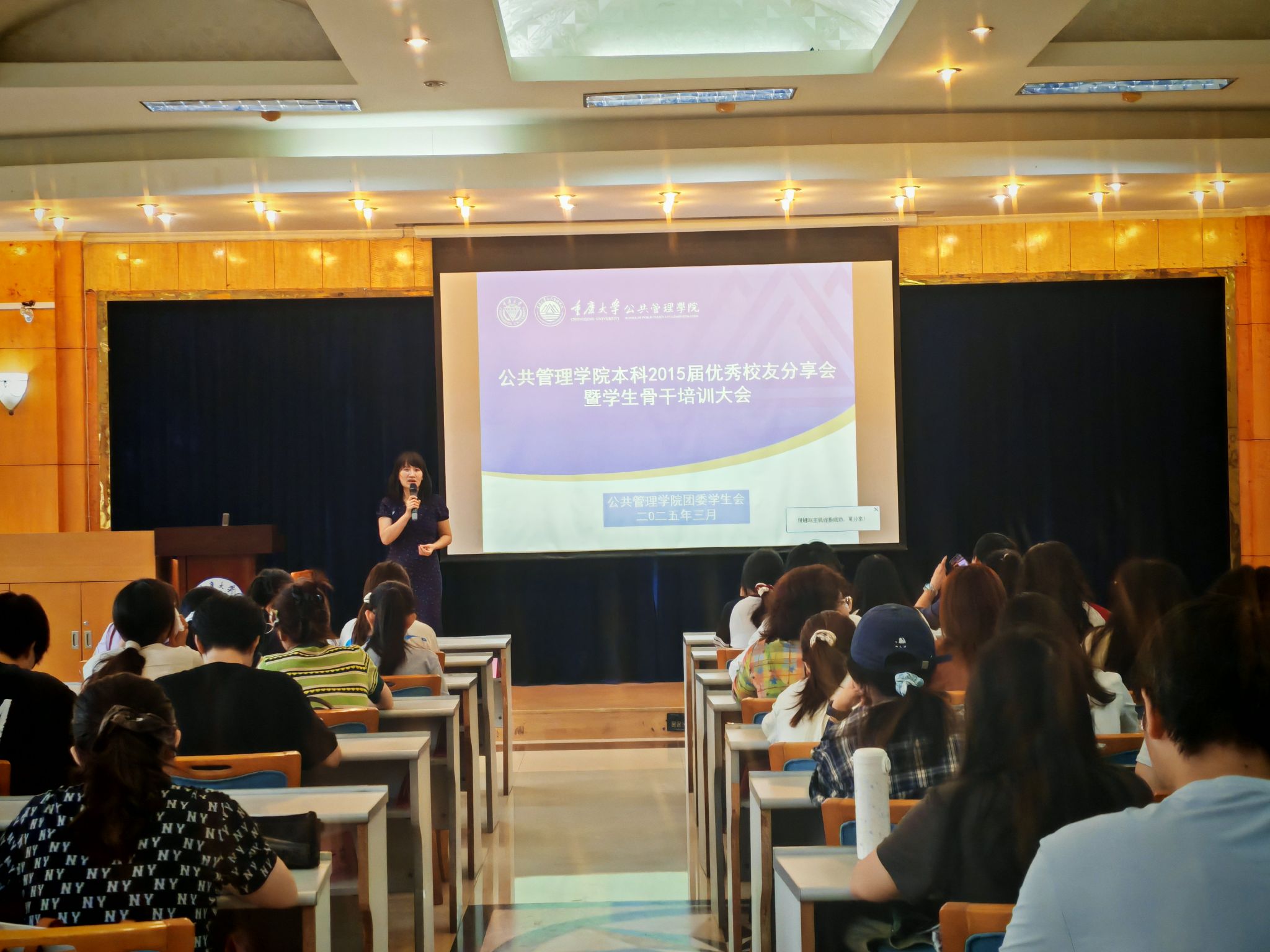 在202教室成功举办优秀校友返校分享会暨学生骨干培训大会。学院2015届本科优秀校友柏士雄受邀回归校园,围绕立志、生涯规划与就业创业等核心主题,与现场学子分享成长故事、交流实践经验。本次会议由学院团委书记兼 24 级辅导员徐柳主持,学院本科生团委学生会干部、各班级团支部干部、学生党支部干部及入党积极分子等近100名学生骨干参会,共同汲取成长力量。