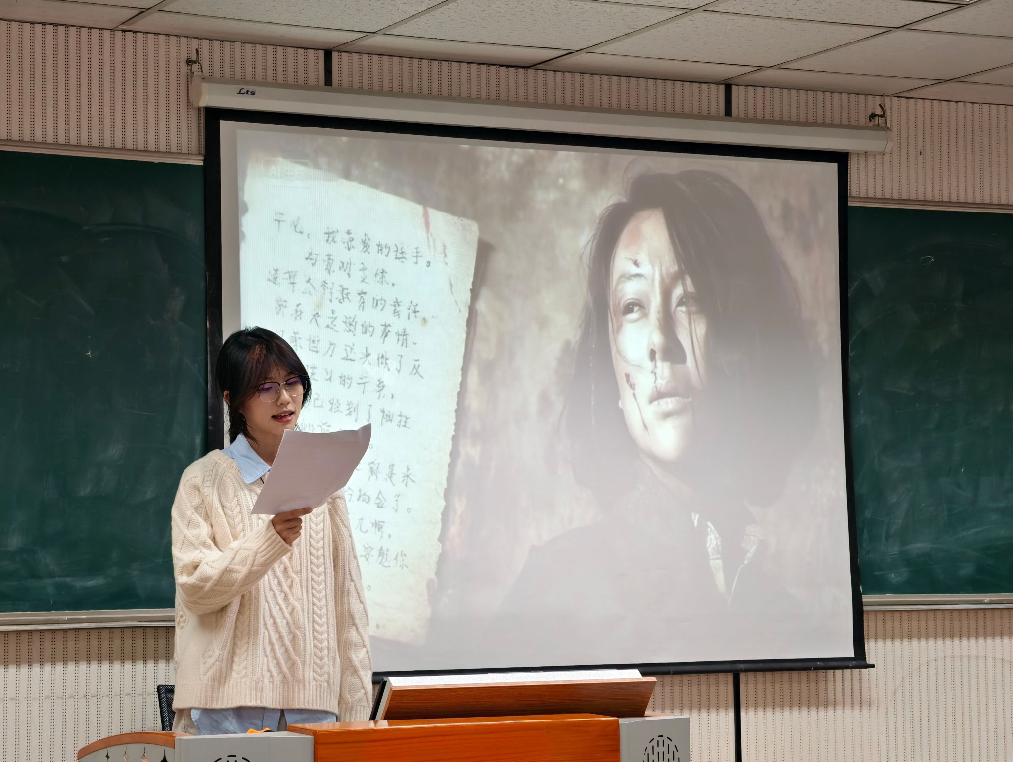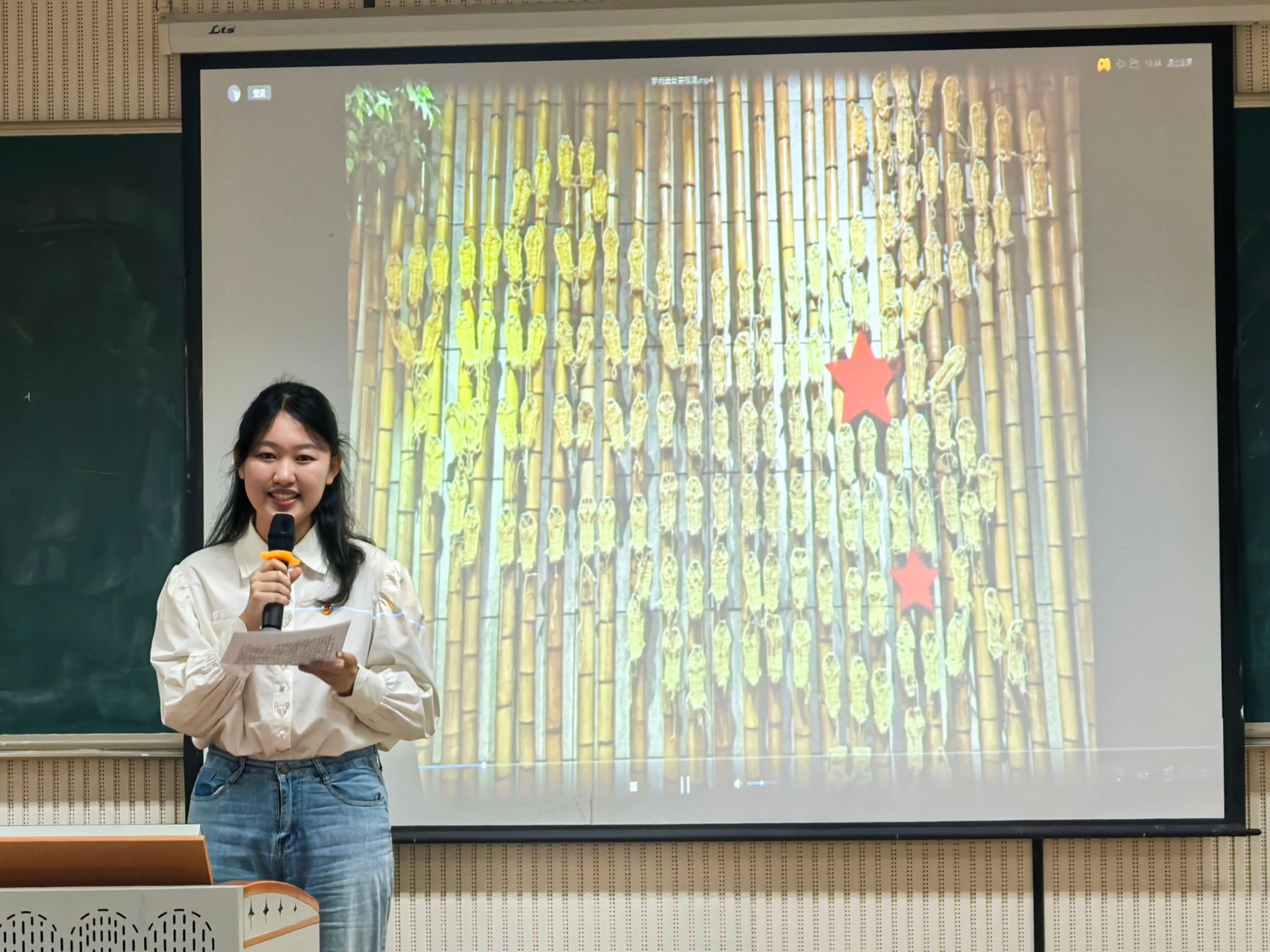 2024级经济学2班的罗雨晴同学以“草鞋踏破千重隘,薪火燃新百代风”为题,通过草鞋背后的感人红军故事,展现了中华儿女深沉的家国情怀;同班黄裎博同学阐述了新时代青年应如何传承抗战精神,在民族复兴征程中贡献青春力量。