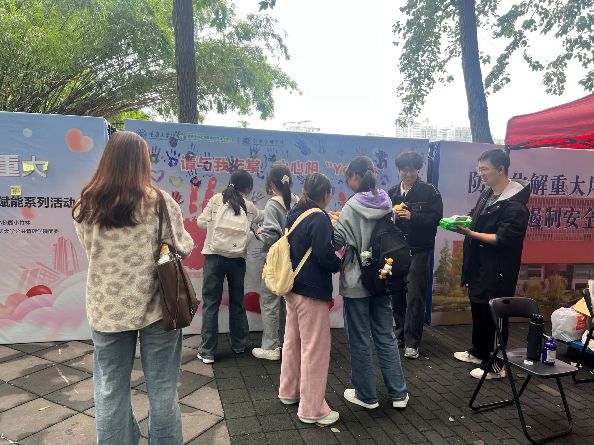 团委承办的“心语映百年,青春暖重大”心理赋能活动在沙坪坝校区A校园小竹林顺利举行。活动吸引了全校学生的积极参与,反响热烈。