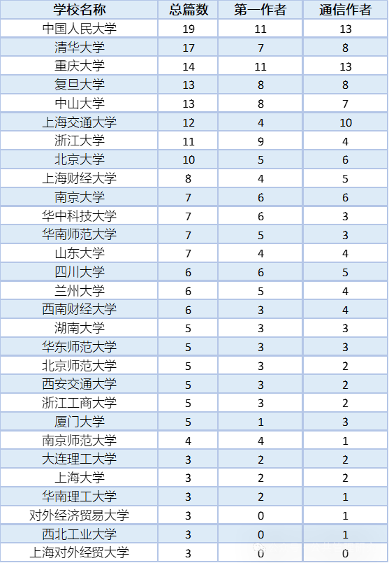 以总计14篇的发表量,在全国高校中仅次于中国人民大学和清华大学,位列第三位,实现了历史性的突破。