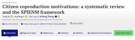 21级直博生贾杨作为第一作者、张金凤教授作为通讯作者的研究成果“Citizen coproduction motivations: a systematic review and the SPIENM framework”在公共管理学科顶尖期刊Public Management Review发表。该期刊在管理学类别中位于一区(Q1),影响因子在公共行政和公共政策领域SSCI期刊中位列前茅,是公共管理学科五大顶尖期刊之一,ABS 4星期刊。该文章由中文色情